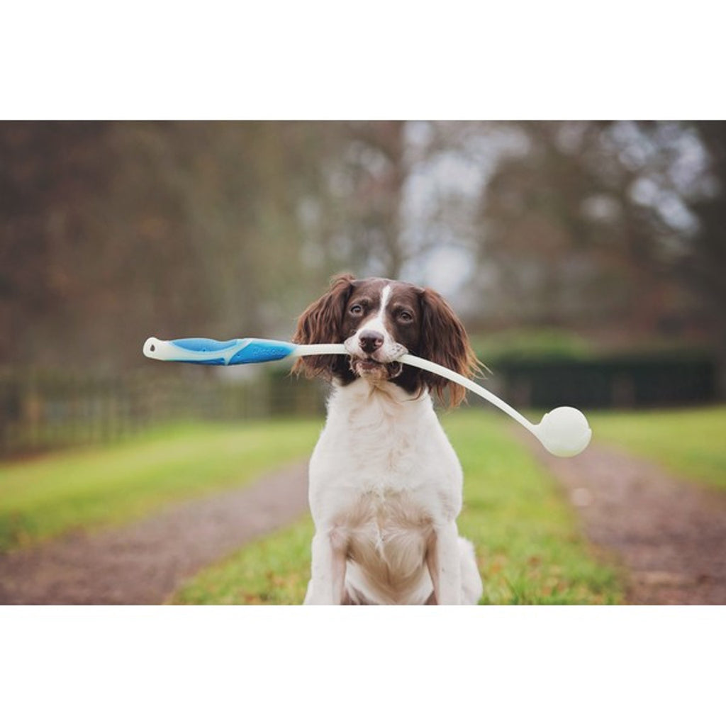 CONVENIENT PICK-UP: The cupped end of the Chuckit! launcher allows pet parents to collect balls easily without bending over