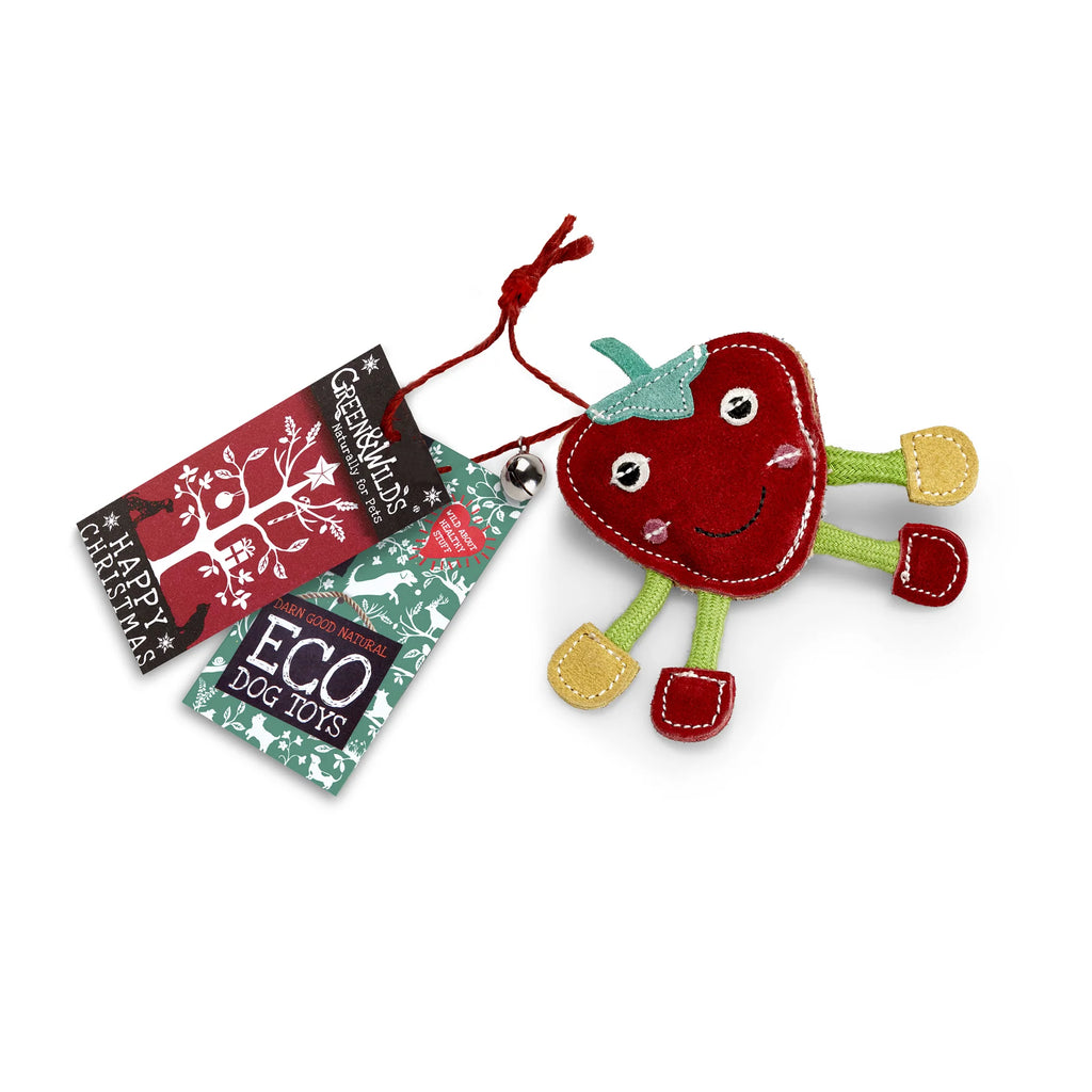 Made from a suede outer with natural jute fibre stuffing. Jute is a natural, sustainable plant fibre. The suede is a by-product and ensures that this material is not wasted. Tough and long lasting, made without using any compound that would harm or be released when chewed. Jute is 100% biodegradable.