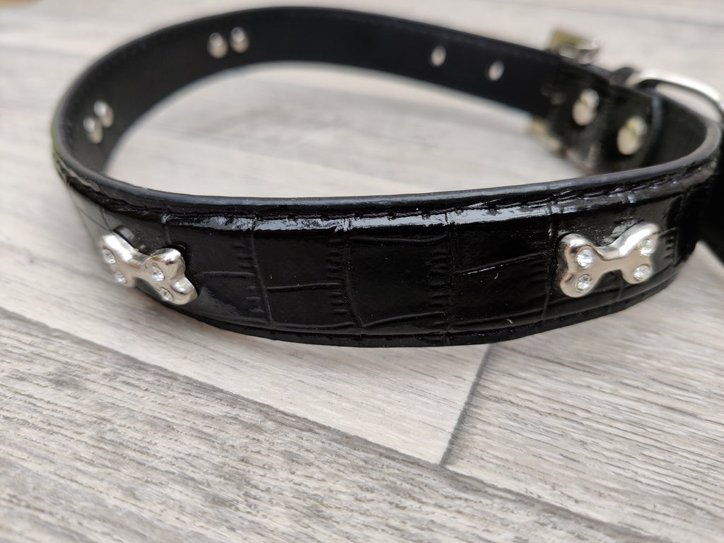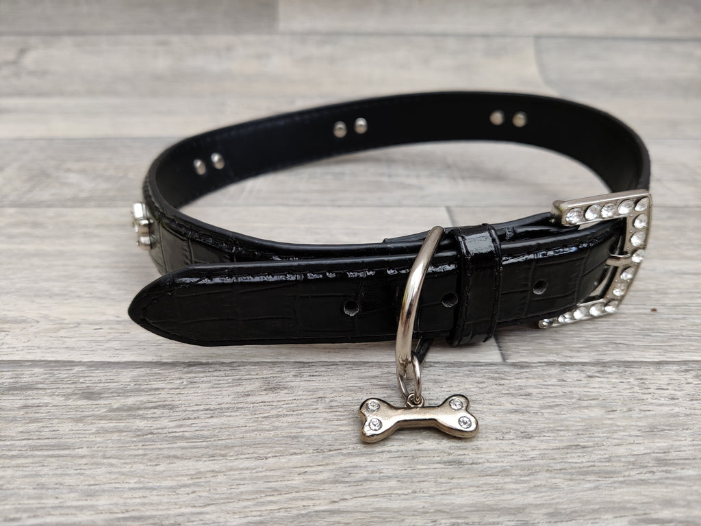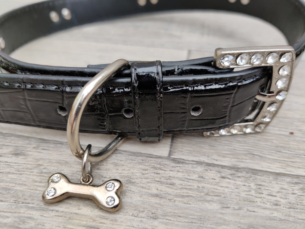 Features sparkling crystal encrusted buckle & four sparkling diamante studded silver bones